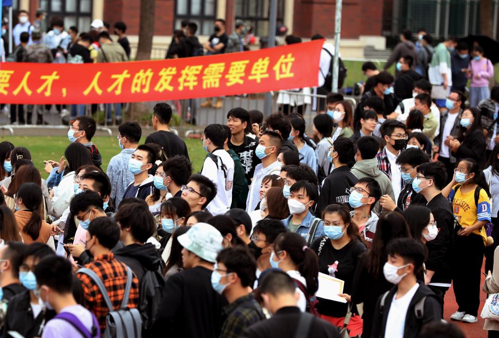 上海,2021年10月12日,2022屆上海高校畢業(yè)生秋季校園招聘會在上海建橋?qū)W院舉行。新華社記者 劉穎 攝