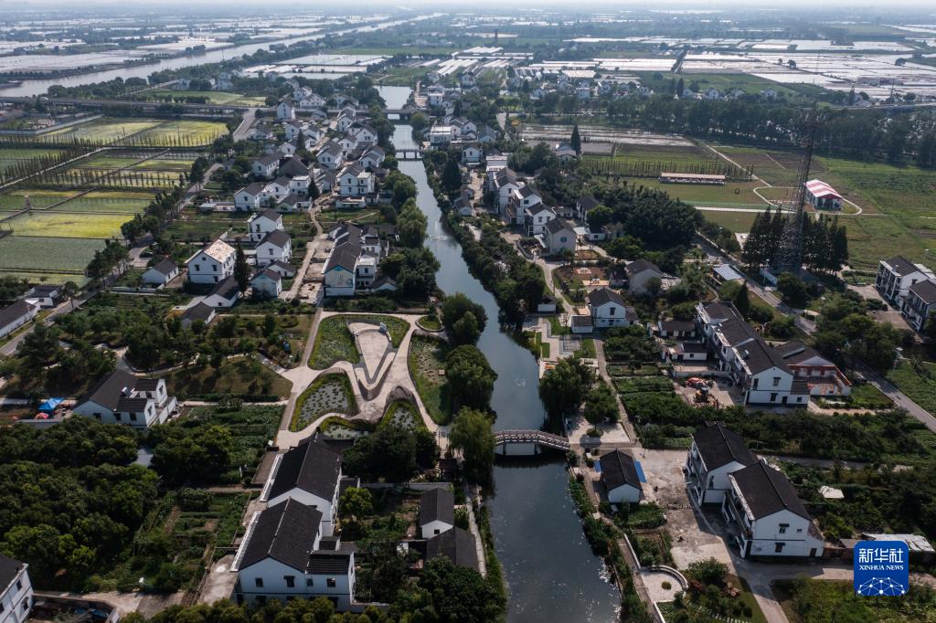 空中俯瞰浙江省嘉興市嘉善縣姚莊鎮(zhèn)橫港村(2021年7月12日攝,無人機(jī)照片)。近年來,嘉善縣建設(shè)高標(biāo)準(zhǔn)農(nóng)田14.8萬畝;同時建設(shè)產(chǎn)業(yè)幫扶聯(lián)合體、農(nóng)業(yè)社會化服務(wù)綜合體等,不斷拓寬農(nóng)民增收致富渠道,走出了一條城鄉(xiāng)深度融合推動共同富裕的實踐路子。新華社記者 徐昱 攝