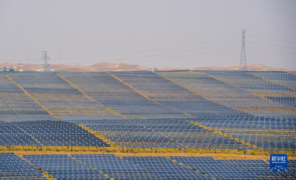 這是位于內蒙古庫布其沙漠中的光伏發(fā)電基地(2020年9月14日攝)。新華社記者 連振 攝