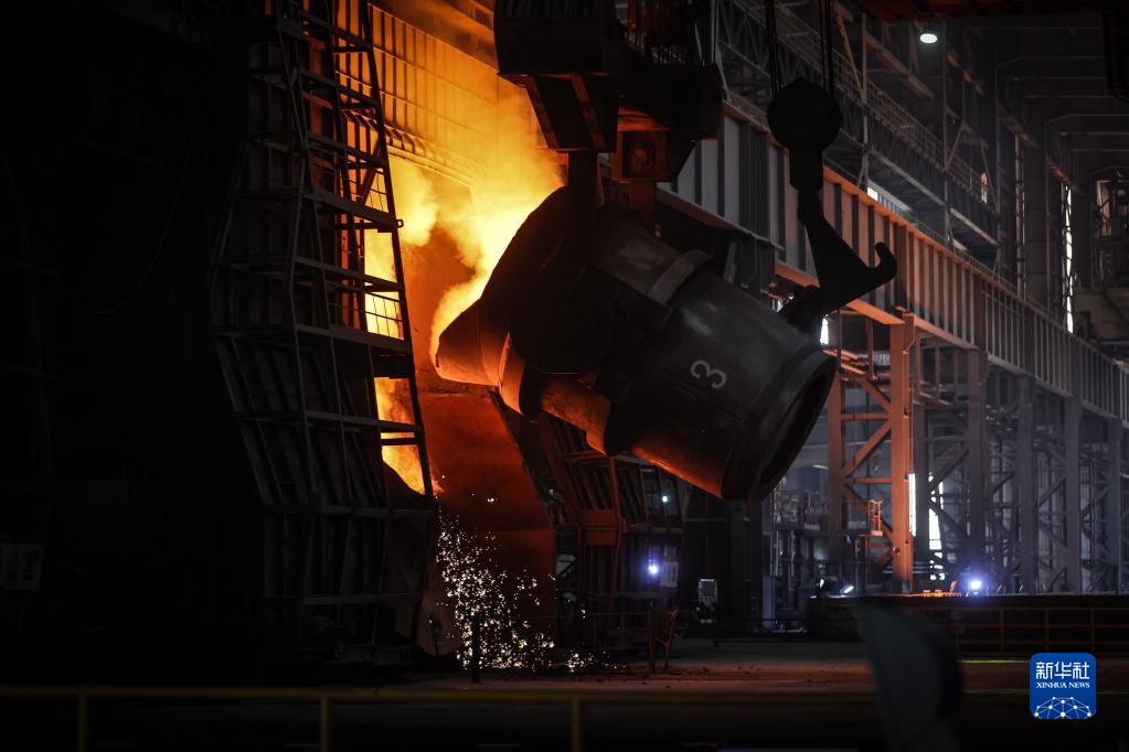 遼寧省鞍山市鞍鋼集團(tuán)鞍鋼股份煉鋼總廠三分廠生產(chǎn)車間(2021年4月20日攝)。新華社記者 潘昱龍 攝