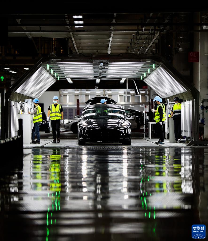 工作人員在特斯拉上海超級工廠內(nèi)作業(yè)(2020年11月20日攝)。新華社記者 丁汀 攝