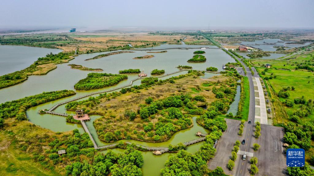 這是山東黃河三角洲國家級自然保護(hù)區(qū)景色(2021年5月13日攝,無人機(jī)照片)。新華社記者 郭緒雷 攝