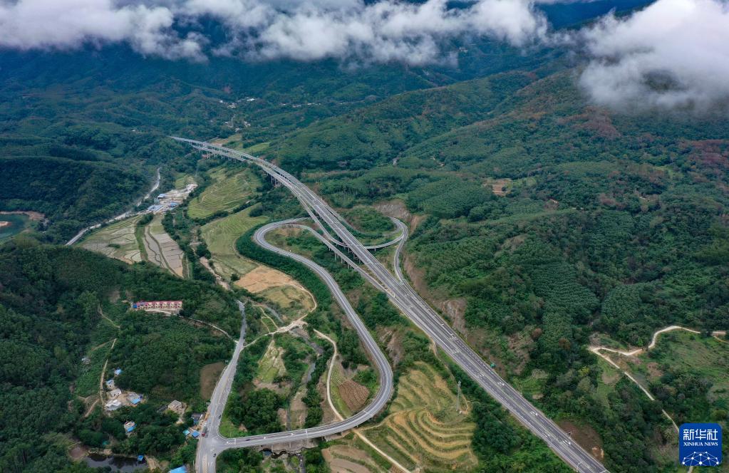 海南海三高速公路一景(2020年12月12日攝,無人機照片)。新華社記者 郭程 攝