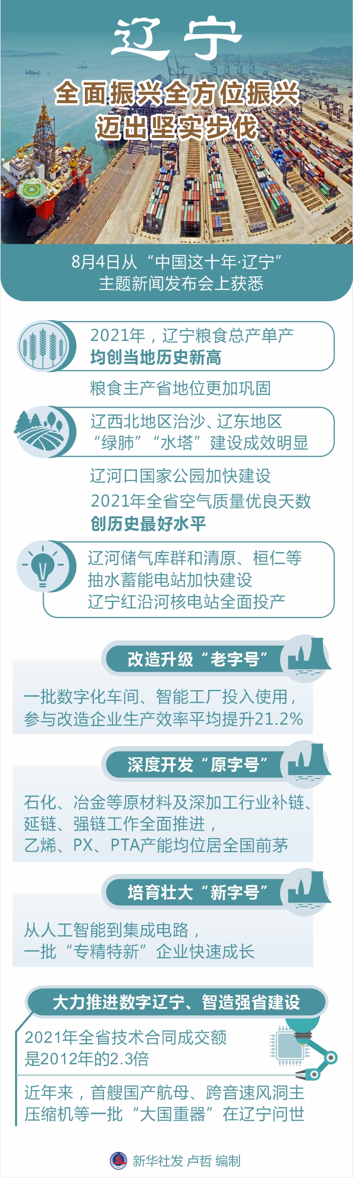 新華社沈陽(yáng)8月4日電(記者李錚)記者從4日舉行的“中國(guó)這十年·遼寧”主題新聞發(fā)布會(huì)上獲悉,黨的十八大以來(lái),遼寧深入貫徹落實(shí)習(xí)近平總書(shū)記重要指示精神,綜合實(shí)力穩(wěn)步提升,改革開(kāi)放深入推進(jìn),生態(tài)環(huán)境明顯改善,遼寧全面振興全方位振興邁出堅(jiān)實(shí)步伐。