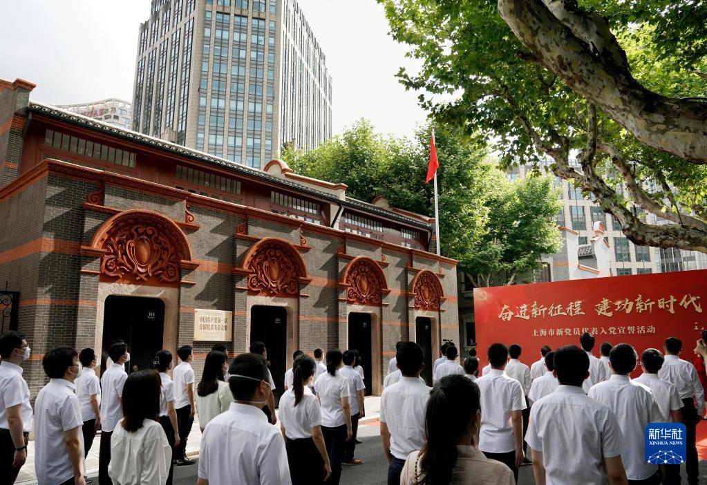 上海市新黨員代表入黨宣誓活動在中共一大會址前舉行(2022年7月1日攝)。新華社記者 劉穎 攝