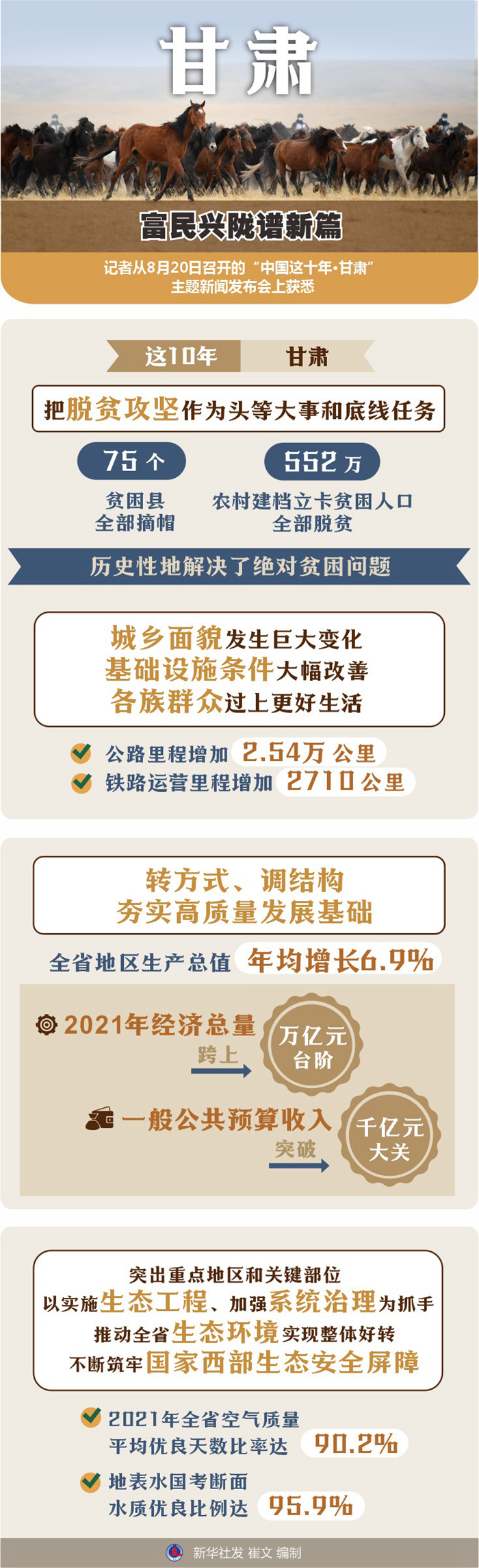 新華社蘭州8月20日電(記者王博)記者從20日召開的“中國這十年·甘肅”主題新聞發(fā)布會上獲悉,黨的十八大以來,甘肅深入貫徹落實(shí)習(xí)近平總書記重要指示精神,負(fù)重自強(qiáng)、頑強(qiáng)拼搏,努力譜寫加快建設(shè)幸福美好新甘肅、不斷開創(chuàng)富民興隴新局面的時代篇章。