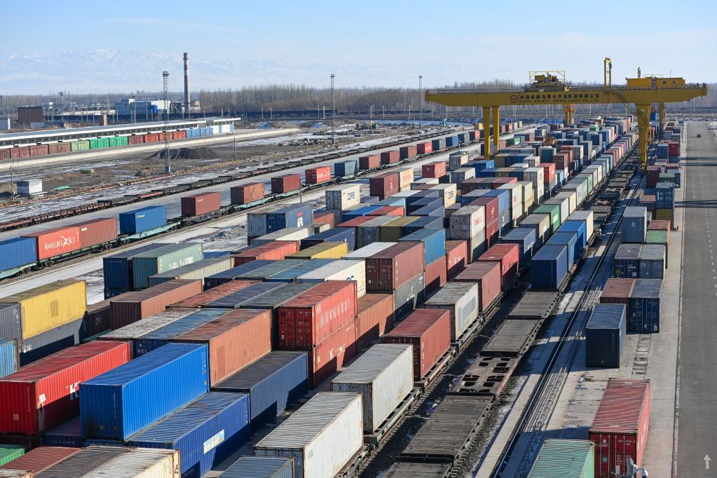 “中歐(中亞)班列開行以來,新疆霍爾果斯、阿拉山口兩大口岸累計通行進(jìn)出境班列超過5萬列,僅2021年,中歐班列運送貨物146萬標(biāo)箱,貨值749億美元,在中歐貿(mào)易總額中占比8%!敝袊F路烏魯木齊局集團(tuán)有限公司負(fù)責(zé)人介紹。