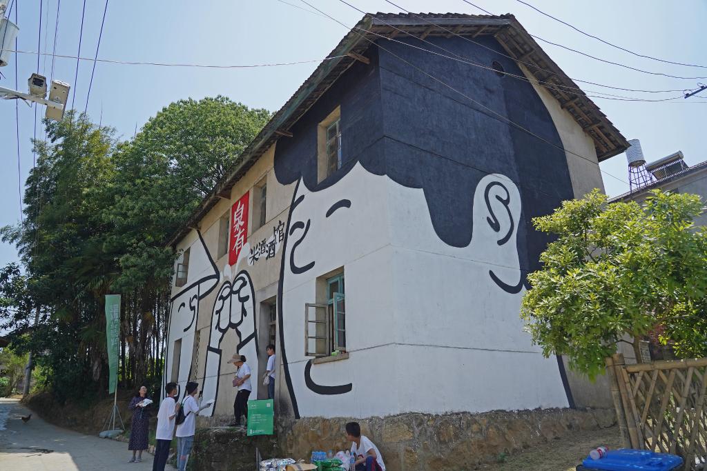 數(shù)年前,20多位藝術家的到來,讓原本乏人問津的百人小村,變成“沒有屋頂?shù)拿佬g館”:簸箕上墻成為藝術品,豬圈變身村莊展覽館。通過對鄉(xiāng)土文化就地改裝,讓藝術品散落鄉(xiāng)村茶園間、舊屋里和田野上。