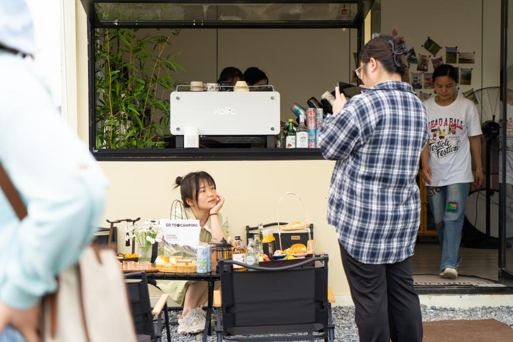 5月7日,顧客在安徽省潛山市南北咖啡館拍照。新華社記者 趙金正 攝