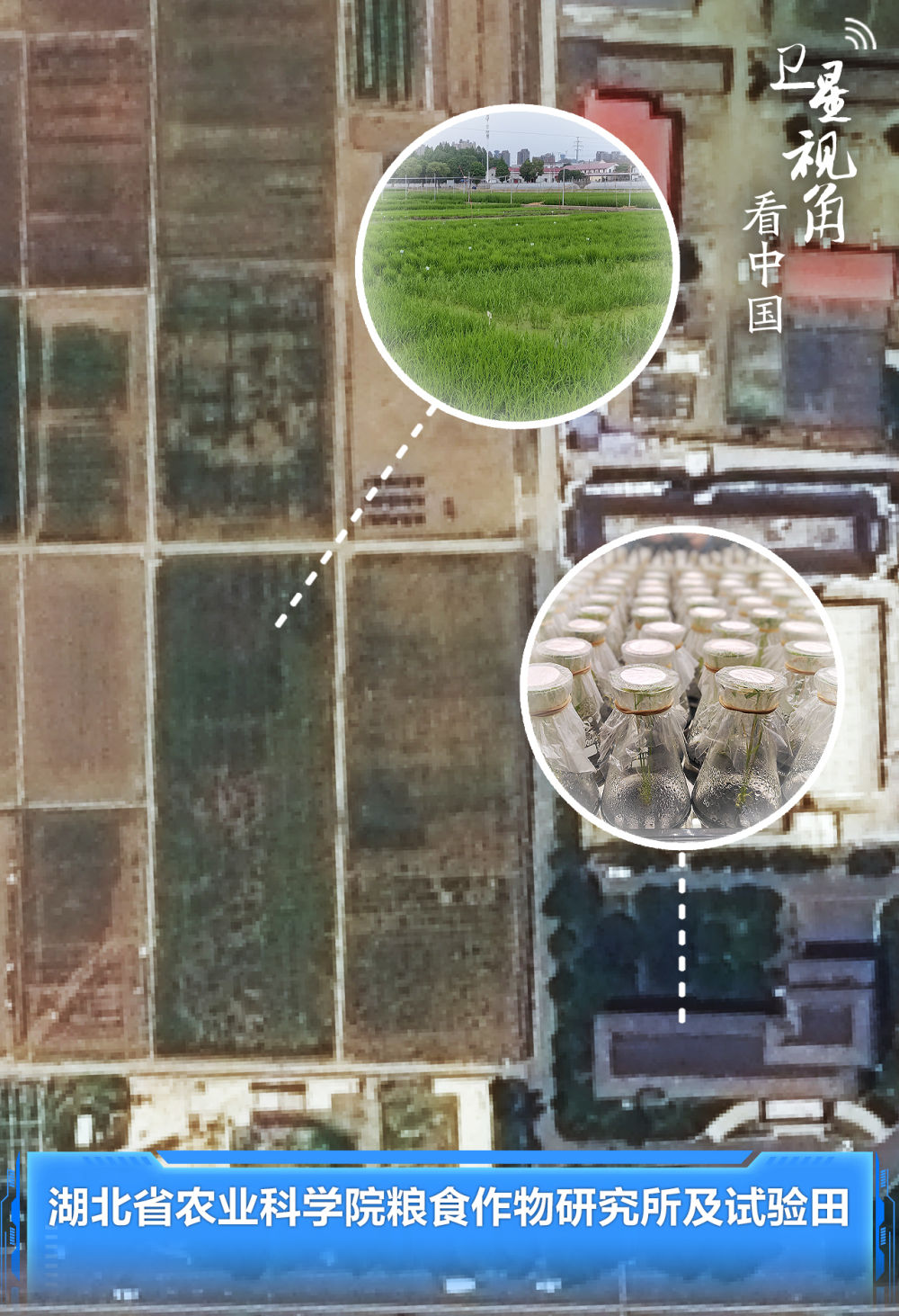 ??圖為湖北省農(nóng)業(yè)科學(xué)院糧食作物研究所(右下角建筑)及試驗(yàn)田(左側(cè)農(nóng)田)??蒲腥藛T選育的產(chǎn)量高、品質(zhì)優(yōu)、抗性強(qiáng)的作物新品種正在田間試驗(yàn)。