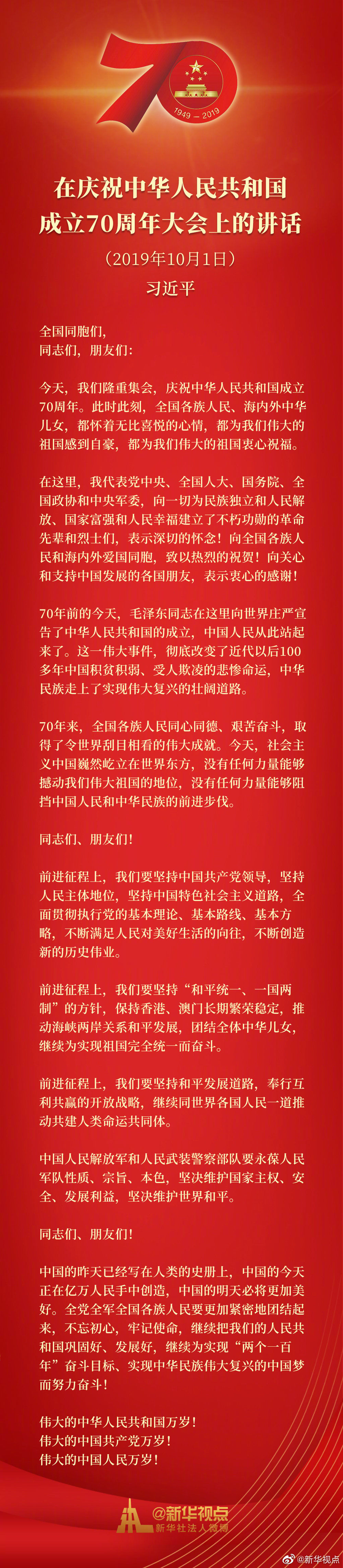 習(xí)近平在慶祝中華人民共和國(guó)成立70周年大會(huì)上的講話