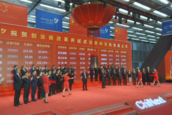 創(chuàng)業(yè)板注冊制首批新股上市儀式現(xiàn)場