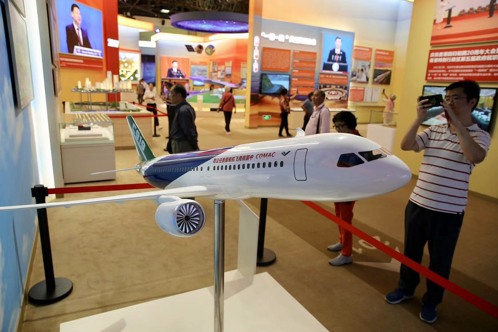 觀眾參觀國產(chǎn)大飛機C919