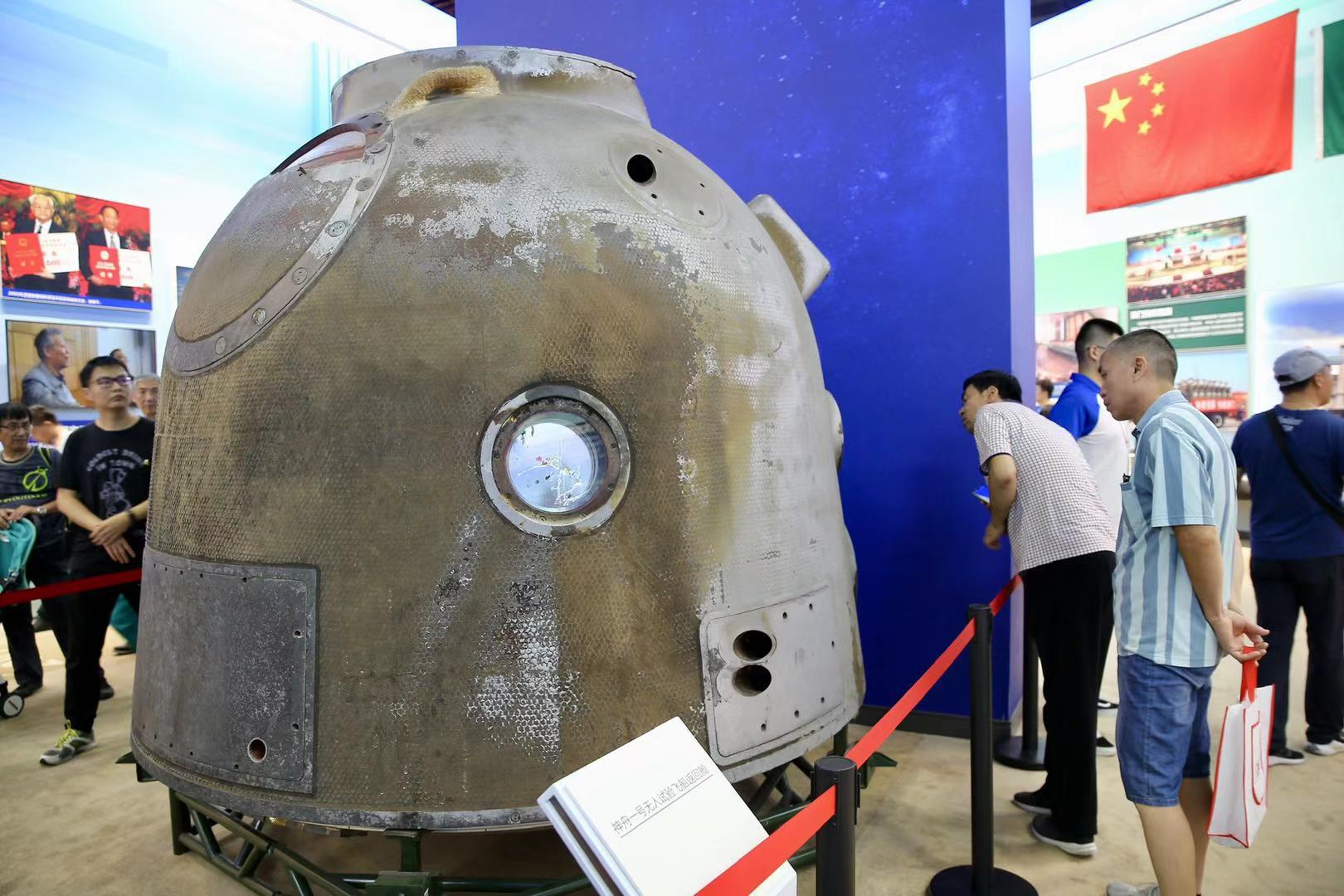 觀眾參觀神舟一號無人試驗飛船返回艙
