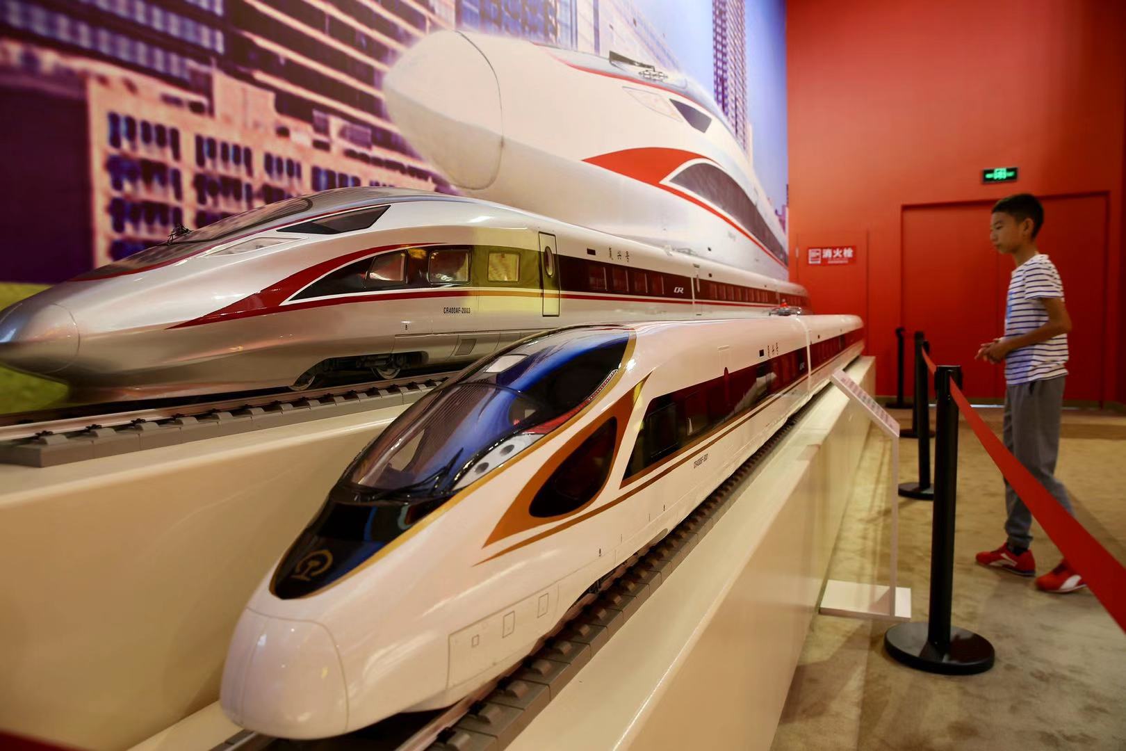 觀眾觀看高鐵復興號模型 本報記者 車亮 攝