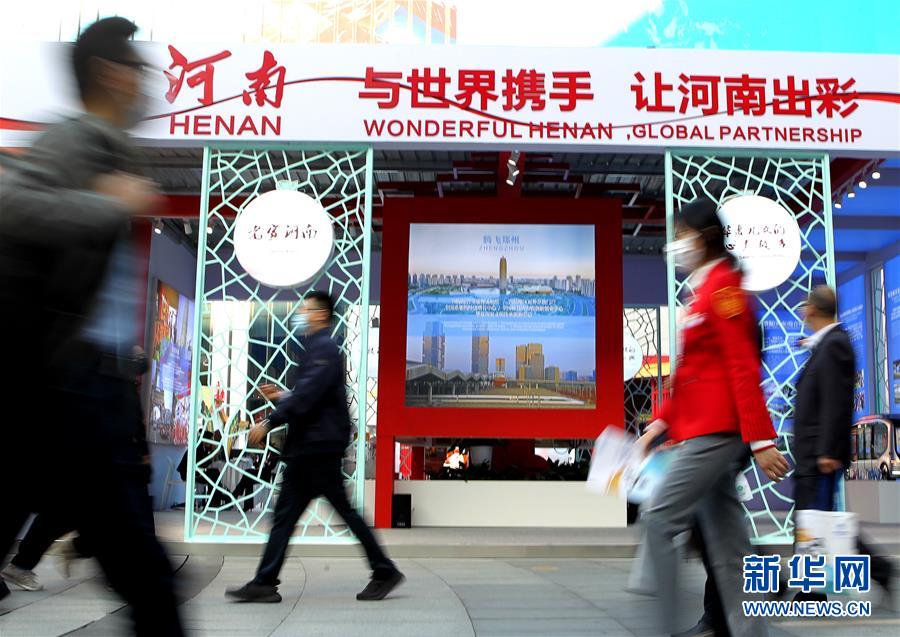 11月5日,參觀者從河南綜合館前走過。 第三屆中國(guó)國(guó)際進(jìn)口博覽會(huì)設(shè)置了精彩紛呈的人文展示項(xiàng)目,幫助參加進(jìn)博會(huì)的國(guó)內(nèi)外客商了解中國(guó)地方文化特色,促進(jìn)人文交流。 新華社記者 陳飛 攝