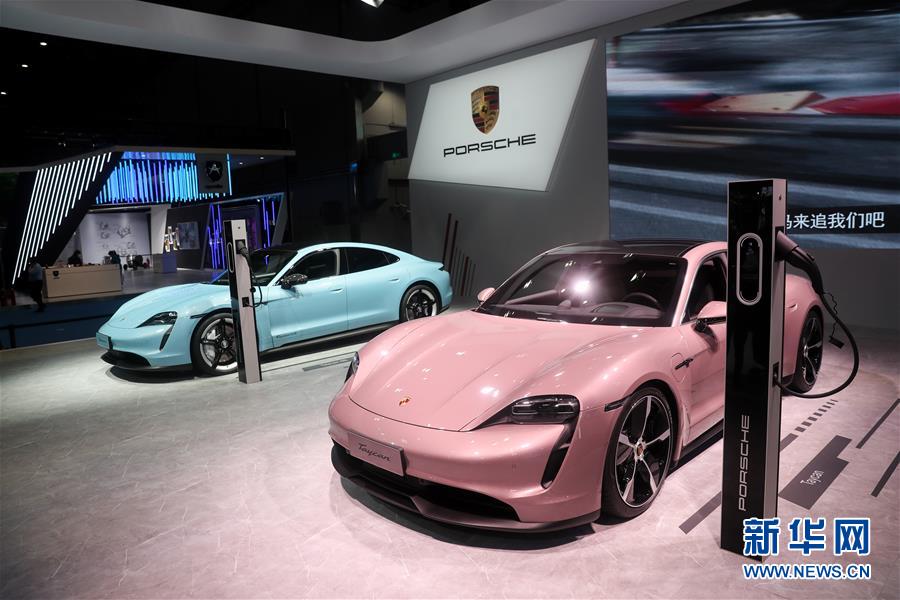 11月6日在進(jìn)博會汽車展區(qū)拍攝的保時捷電動汽車。 在第三屆中國國際進(jìn)口博覽會上,多個品牌展示的新能源汽車成為參觀者關(guān)注的焦點。 新華社記者 丁汀 攝
