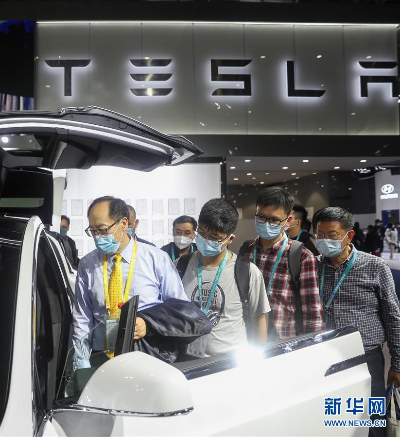 11月6日,人們在進(jìn)博會汽車展區(qū)參觀特斯拉Model X電動汽車。 在第三屆中國國際進(jìn)口博覽會上,多個品牌展示的新能源汽車成為參觀者關(guān)注的焦點。 新華社記者 丁汀 攝