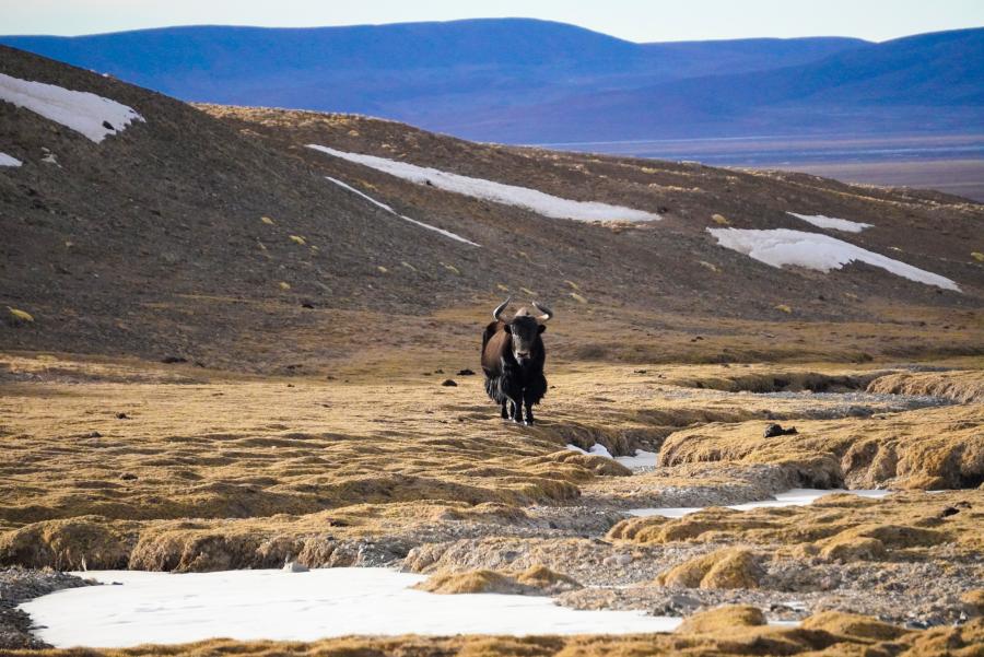 西藏羌塘國家級自然保護(hù)區(qū)內(nèi)的野牦牛(2021年1月16日攝) 新華社記者 格桑朗杰 攝